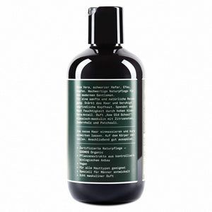 Das Shampoo + Body Wash ist zum Duschen und für die tägliche Haarwäsche geeignet. Die cremig-gelige Konsistenz sowie natürliche Kokostenside reinigen Haut und Haar schonend und sorgen für eine entsprechende Rückfettung. Der hohe Aloe-Vera-Anteil bewahrt die Haut vor Austrocknung. Schwarzer Hafer-Extrakt und Lecithin stärken, regenerieren und kräftigen das Haar. Durch seine gute Hautverträglichkeit ist das Produkt für alle Haut- und Haartypen geeignet. Duft „New Old School“: klassisch-maskulin mit Zitrusnoten, Zedernholz und Patchouli.